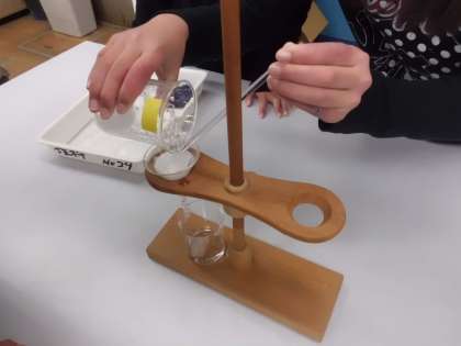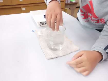 出てきたものがホウ酸であることを確認すると,とけているものが出てきたことに驚いている子どもたちでした。