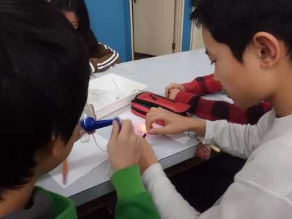 「豆電球よりも発光ダイオードの方が手回し発電機は回しやすいね。」