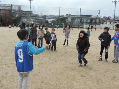 大なわで遊ぶグループ、自分たちの好きな遊びで遊ぶグループなど、グループごとの遊び方で楽しんでいました。