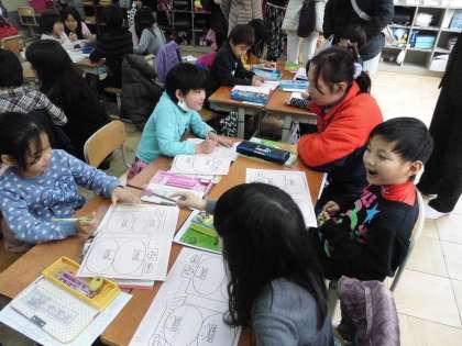 その中で気付いた、「自分のがんばり」が「周りの人のにこにこ」につながるということを振り返って、今日は参観で来てくださったおうちの人と一緒に「にこにこ大作戦」を考えました。