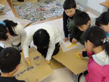 段ボールを組み合わせて,思い思いの作品をグループで作りました。