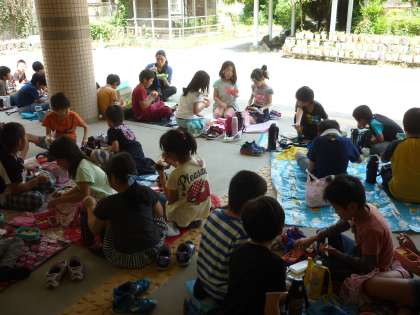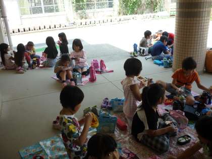 本日は快晴でしたが,昨日の荒天のため,登山は危険と判断し,校外学習は中止となりました。そこで,少しでも校外学習気分を味わうため,外でお弁当を食べました。朝早くからお弁当の準備ありがとうございます。来週こそは天気に恵まれ,校外学習に行けますように。
