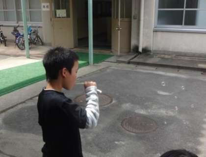 5時間目にシャボン玉を作ってみんなで遊びました。