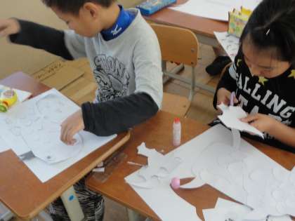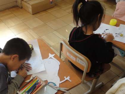 細かいもようをていねいに切ったり,貼ったり…。