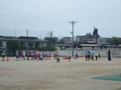 5年生が体育の学習で、リレーをしています。