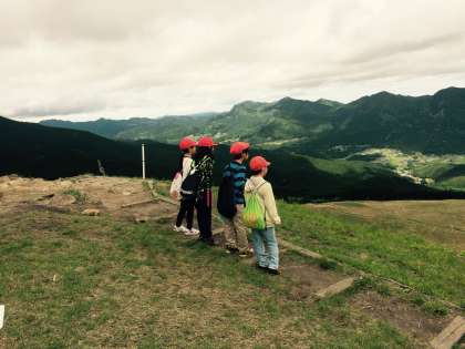 班で協力して山を登り、頂上からは校長先生の素敵なところを大きな声で叫んでいます。