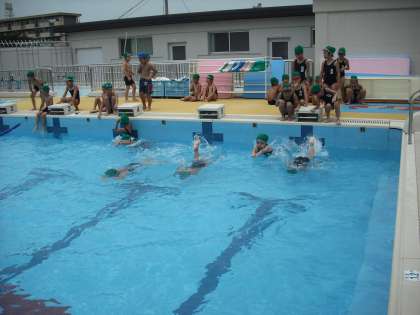 プールでの学習がはじまって約1か月,2年生のみんなはすっかり水にも慣れました。もぐったり泳いだりと,一人一人自分にあったみずあそびを楽しんでいます。