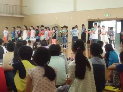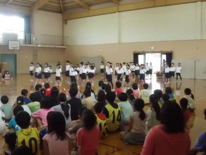 3年生は、ホーチュンクッキーのメロディにあわせて、ダンスをしながら1年生に思いを伝えました。