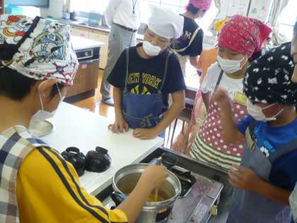 その学習の一環として,大阪ガスの方が来られ,地球にやさしいラーメンの作り方を教えて下さいました。なぜ地球温暖化が起こるのか,それによってどんな困ったことが起こるのかなどを学びました。実際に,カップ麺と袋麺を選んだり,水の温度や量を測ったり,どの方法で調理することが地球にやさしいのかを考えました。