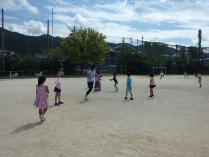 暑くても、外で遊びたいと思う子どもは元気よく遊んでいます。