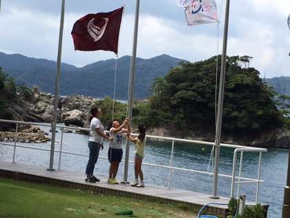 無事に到着,広い海を眺めながら入所式が始まりました。