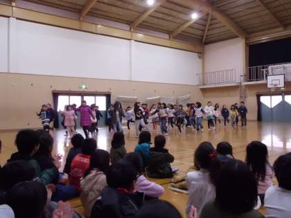 1年生から5年生までが、ありがとうの気持ちを言葉や歌、ダンスで伝えました。