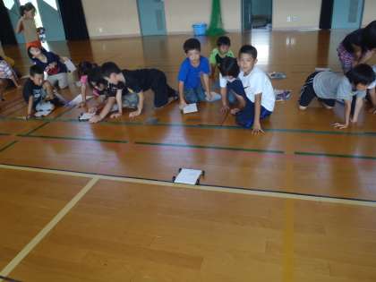 ゴムを引っ張る長さがちがうと走る距離はどう変わるか確かめました。