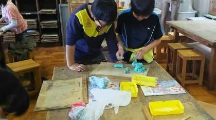 グループで協力して,ねん土の作品を作りました。