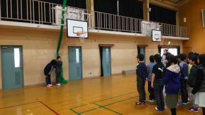 ストレッチやゲーム,フリースロー(バスケットボール)などを一緒に楽しみました。