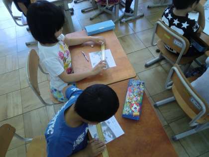 今,算数では「長さ」の学習をしています。「cm」や「mm」など,新しい単位を学んだり,30cmものさしを使って直線を書く練習をしたりしています。みんな集中して学習できています。