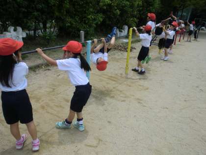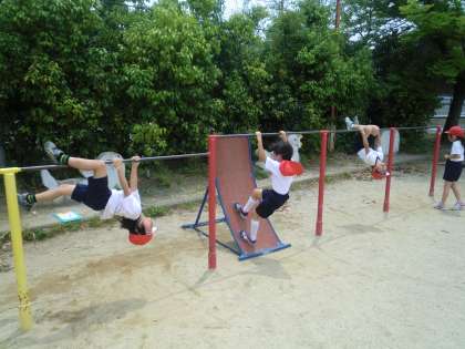 今,体育科では「てつぼうあそび」に取り組んでいます。連続技の練習をしたり,これまでできなかった技に挑戦したりしています。友達とアドバイスし合う姿も見られます。それぞれの目標を達成できるよう,みんなでがんばっていきたいと思います。