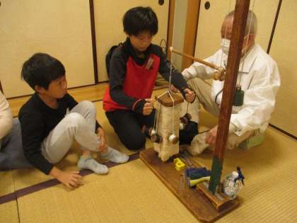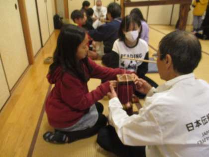 日本伝統の工芸品である京くみひもの体験しました。組台を使って糸を交差しながら作っていきます。初めて見る道具や作り方に、みんな興味津々で京くみひものストラップを作りました。伝統を感じながら、思い出の残るものを作ることができました。