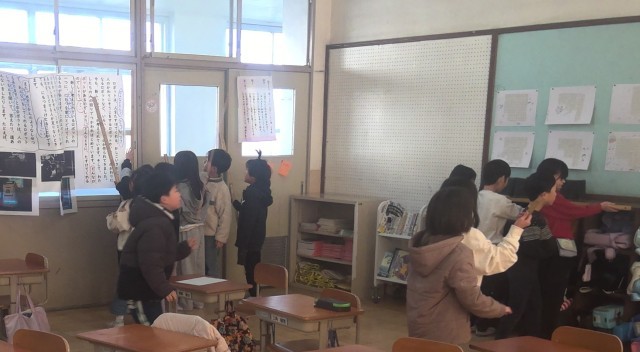 1メートルの竹尺を使い、教室にあるものを測りました。ぴったり、1メートルになるところを見つけているグループもありました。