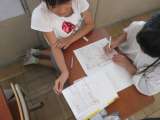 今日は巻き尺で学校にある木や柱のまわりの長さを測りました。班のメンバーと交代し...