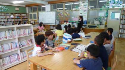 本日,図書館オリエンテーションがありました。図書室の本の並び方や国語の授業であった「白いぼうし」の登場人物,松井さんが出てくる他の本なども紹介され,子どもたちは興味津々に聞いていました。また,その後百科事典で問題を解いていました。これからたくさんの調べ学習があるので,ぜひ図書館を活用していきたいと思います。