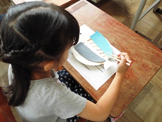 一人一つ魚の模型と、おはしを借りて練習しました。