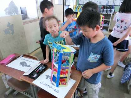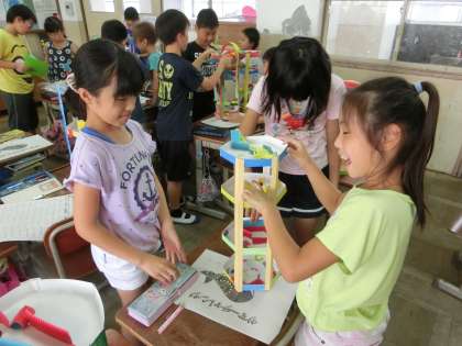 コロコロガーレが仕上がったので,今日はみんなで遊びました。友だちの作品と自分の作品では,工夫の仕方が違うので,新しい発見がたくさんあったようです。また次の作品を作る時に,今日発見した工夫を使えるといいですね。