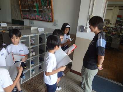 日野小学校での学校生活を一年生に紹介するために,運動会やたてわり活動などのテーマをグループごとに調べています。