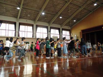 キャンプファイヤーの練習ではレクリエーション係が中心となってリハーサルをしました。