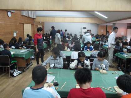 竹箸づくりの様子です。そう簡単には削れません。でもみんな頑張っていました。