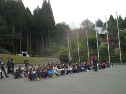 朝の集いの様子です。松陽小学校と2校で行いました。