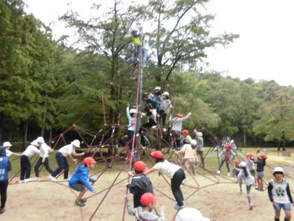 秋の校外学習では,お天気が心配でしたが,宝ヶ池に行くことができました。宝ヶ池では,タワーのように高いロープの遊具やよく滑る大きなすべり台,大人数で乗ることができるブランコなどでお友達と仲良く遊んだり,ドングリや木の実などいろいろな秋見つけを楽しんだりしました。校外学習に向け,準備のお声かけや当日のお弁当など,ご協力ありがとうございました。