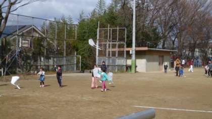 先ほど絵を描いた凧に,足をつけて運動場に凧あげに行きました。風も程よく吹いていて,子どもたちは作ったたこを走りながら高く高くあげていました。