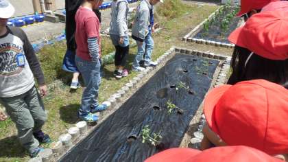 今年度も地域の方々にお世話になり,色々な野菜を育てます。苗の扱い方や植え方を教えていただきました。