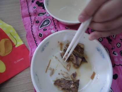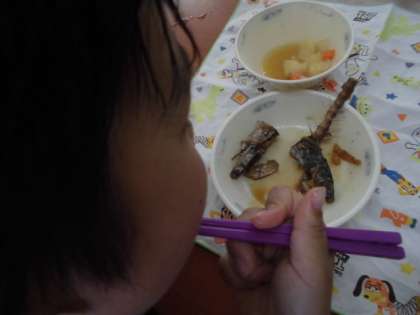 学校では,お箸をどこに入れて,どう骨を外すか,段階をふんで指導します。なかなか大変でした。でも,1年生よりも2年生,2年生よりも3年生と,学年が上がるにつれて,どんどん上手になっています。