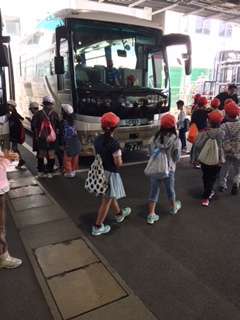予定通りに,みんなでバスに乗車しました。日野小学校に向けて,今,出発しました。