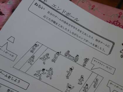 エンドボールの学習が始まりました。用具を使って,コート作りも自分たちでします。ゲームの仕組みやルールに慣れ,楽しみましょう。