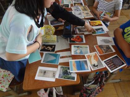 絵や写真など,様々なアートが詰まったアートカードを使って,鑑賞の授業をしました。