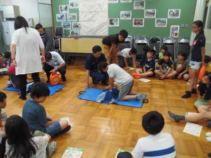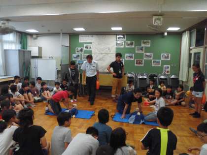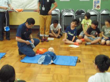 消防署の方に来ていただき,AEDの使い方や緊急時に心掛けなければ
