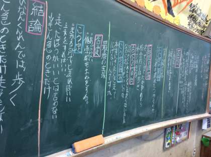 国語課の学習で学級討論会をしました。クラスで考えた議題に対して肯定派,否定派に別れて討論をしました。「廊下はあるくべきである。」や「学校にトランプやウノは必要である。」など様々な議題で討論をしました。