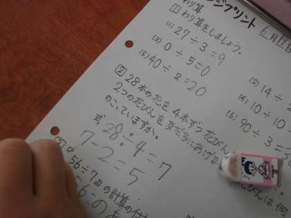 今週は「わり算」や「円と球」の問題などに取り組んでいます。なんでもそうですが,くりかえしくりかえし練習することで,しっかり身に付きます。一日10分の時間でも,一週間,一ヶ月,一年と積もれば,大きな学習量です。「継続は力なり」ですね。