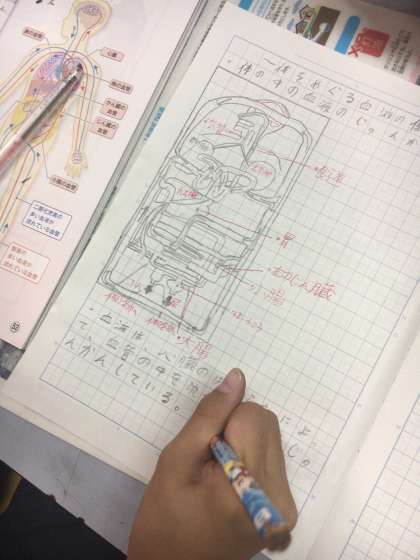 自分たちの体がどうなっているのかを本や模型,インターネットを使って調べました。みんな一生懸命調べて,まとめていました。