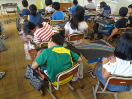 コンテを使って絵をかきました。黒一色に塗った画用紙を,消しゴムを使って消していき,できた模様にさらに色を付けて…。絵の具とはまた違う幻想的な絵ができあがりました。