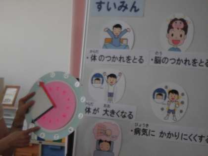 3年生のみんなに必要なすいみん時間は,10時間です。朝7時に起きるとしても,10時間眠るには・・・,そう,夜9時に寝ないといけません。帰宅後に,宿題,遊び,夕食,お風呂など,時間をじょうずに過ごさないと,あっというまに9時を過ぎてしまいます。「練る子は育つ」! 生活リズムを整えて,しっかりすいみんをとりましょう。