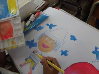 と,水の量を調節しながら,イメージに合うように色作りを工夫しています。