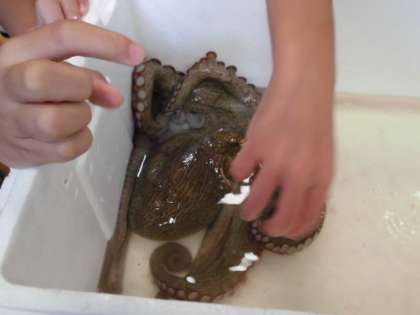 一番人気のタコ。動き回るし,水は飛ぶし・・・で,水しぶきと子どもたちの悲鳴と歓声があがっていました。大盛り上がりでした。