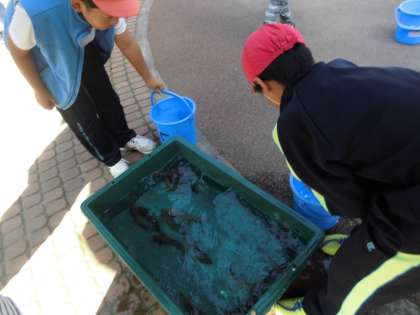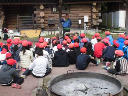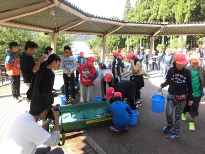 花脊山の家の職員さんの話をよく聞きながら,渓流魚を捕まえ,自分でさばいて焼き魚にしました。