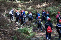 友達同士の声かけや,先に出発していた他の学校の子どもたちの応援で無事に登りきることができました。
