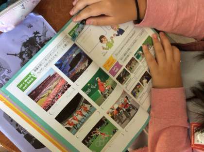 を題材としてI want to watch〜の表現について学習しました。みんなそれぞれ見たい競技が異なり,英語での会話を楽しんでいました。