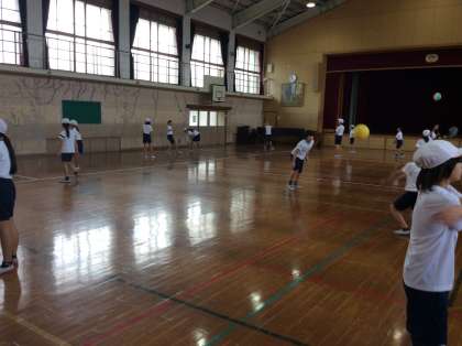 体育ではソフトバレーボールに取り組んでいます。トスやレシーブを繰り返して,みんなで何回ラリーができるかに挑戦しました。いろいろなグループで試して,友だちと協力してラリーができました。